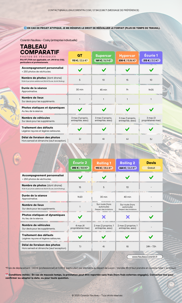 Corentin est un photographe minutieux et passionné. C’est une personne qui prend le temps d’apprécier ce qu’il fait et ce qu’il voit, ce qui se ressent dans son travail. Une personne pleine de joie et de gentillesse, pour des photos pleines d’histoires et de lumière. Que ce soit des personnes, des véhicules ou des paysages , ses photos sont toujours magnifiques. Il a toujours su mettre en valeur les véhicules des propriétaires, prenant le soin de discuter avec les gens pour en apprendre plus sur eux. Nous avons eu la chance de le rencontrer en tant que photographe et aujourd’hui nous le comptons comme ami parmi nous.