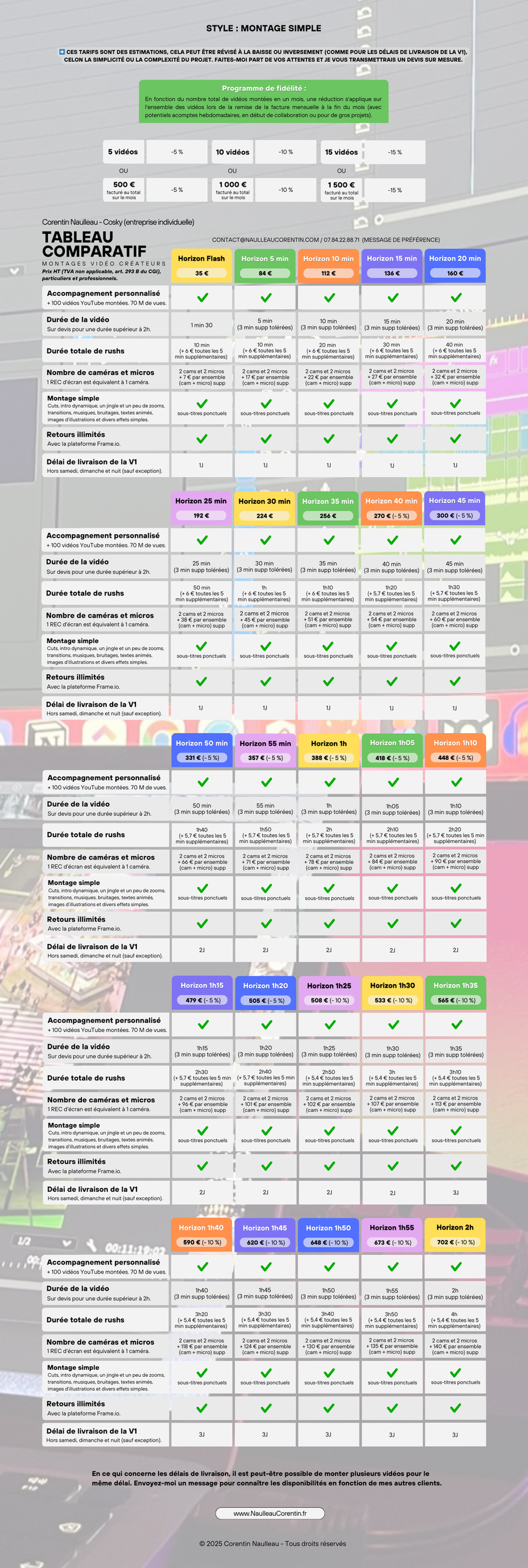 Montage dynamique (tarifs plus élevés pour un montage dynamique) :